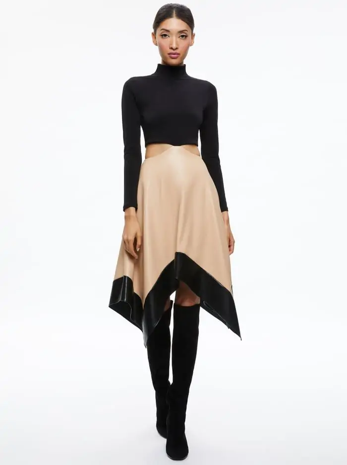 FAYETH CUT OUT ASYMMETRICAL HEM MIDI DRESS