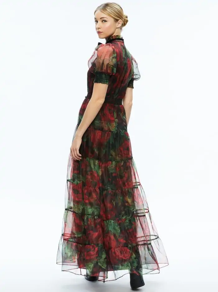 The coolest maxi dress, hands-down. This one includes dramatic puffed sleeves, high neckline, fit and flare silhouette and the most luxe tulle. She's truly a dream.